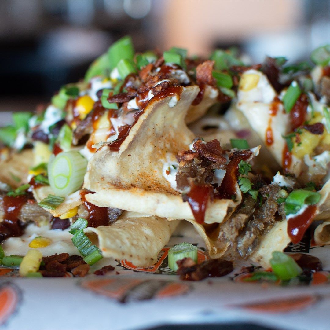 - Backyard BBQ Pork Nachos – A fun new twist on an old fan-favorite, these nachos are stacked with crispy shredded pork, black beans and house-roasted corn topped with Bad Daddy’s very own Amber Ale queso, house-made pineapple salsa, applewood smoked bacon crumbles, hand mixed jalapeño ranch, BBQ sauce, cilantro and green onions.