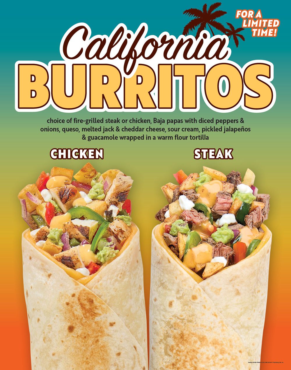 The new California Burritos are available now through July 20, 2026, at participating locations nationwide.