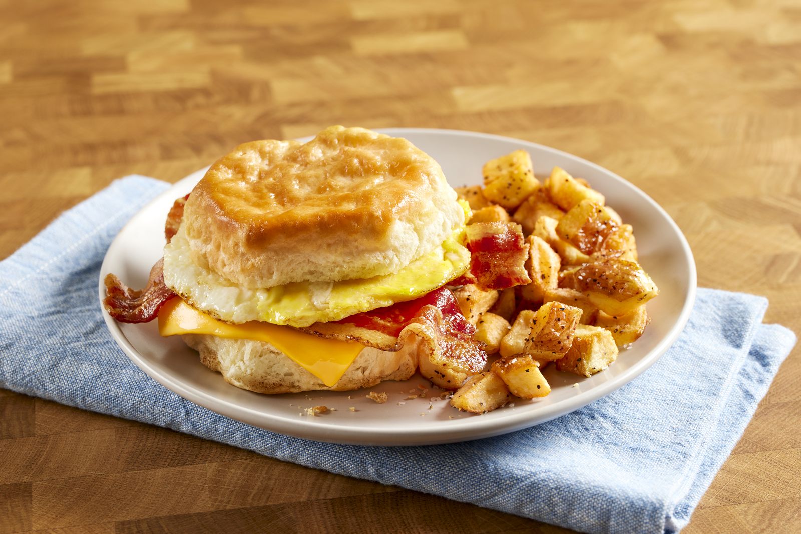 NEW! Buttermilk Biscuit Sandwich Bundle: This breakfast sandwich bundle is perfect for those looking to treat a group to a farm-fresh way to start a morning. The bundle features six classic freshly baked buttermilk biscuit sandwiches with fresh-cracked fried eggs, American cheese and your choice of bacon or sausage. Serving up to six people, the bundle also includes your choice of family-size home fries, hash browns or fresh fruit.