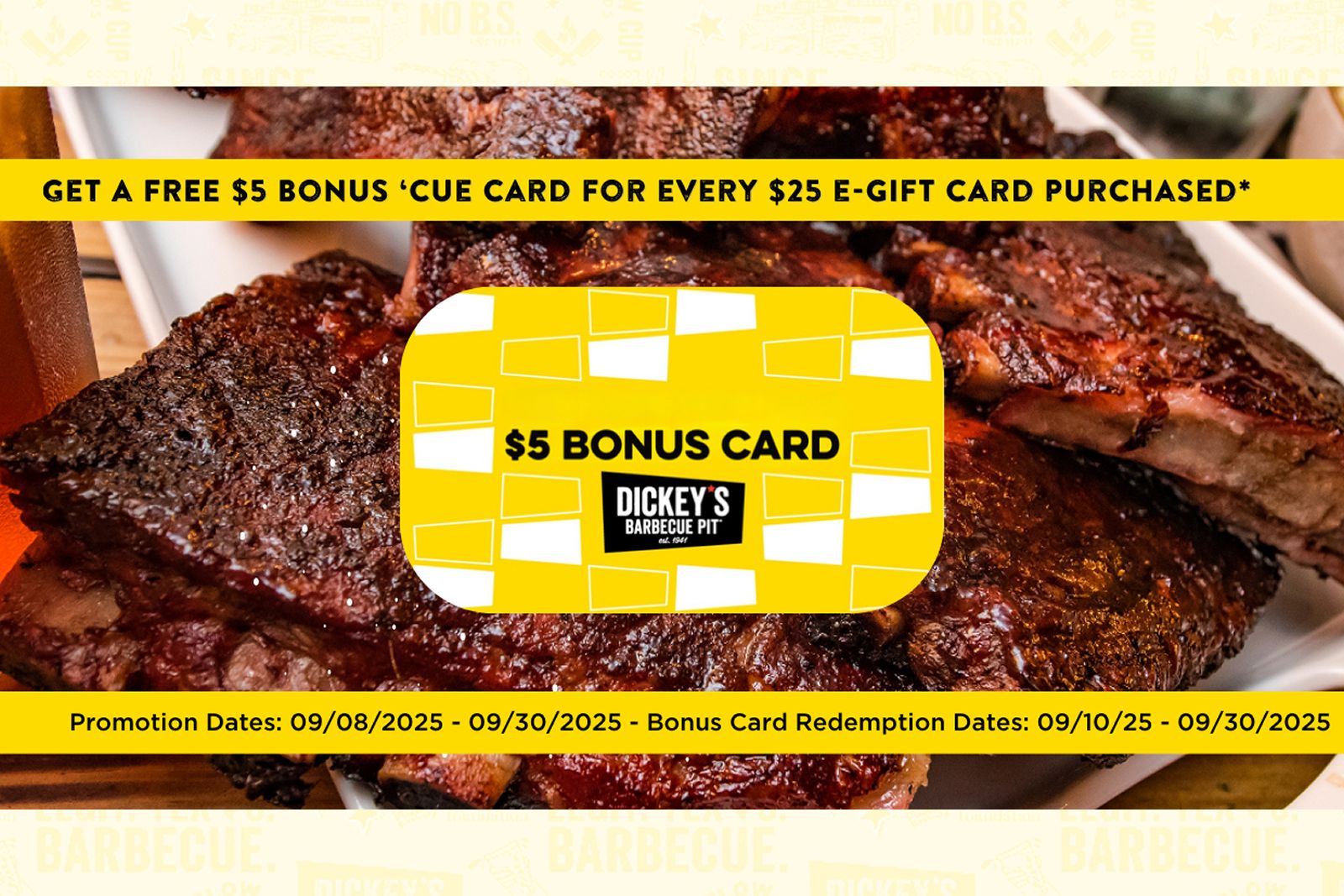 Get a $5 Bonus 'Cue Card with $25 Dickey's e-Gift