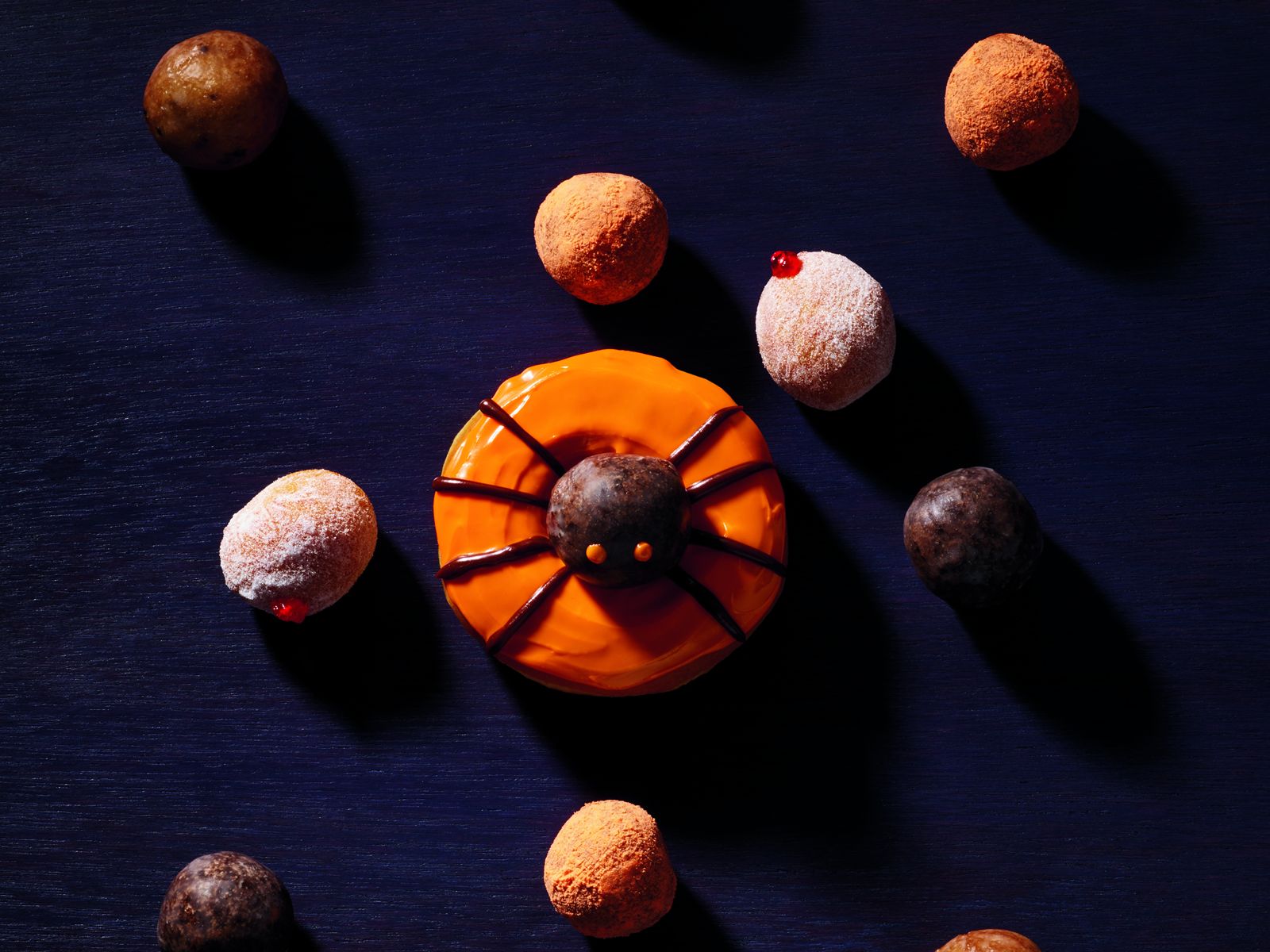 - Spooky Sprinkles: An eerie take on the Chocolate Frosted Donut, topped with chocolate and orange sprinkles