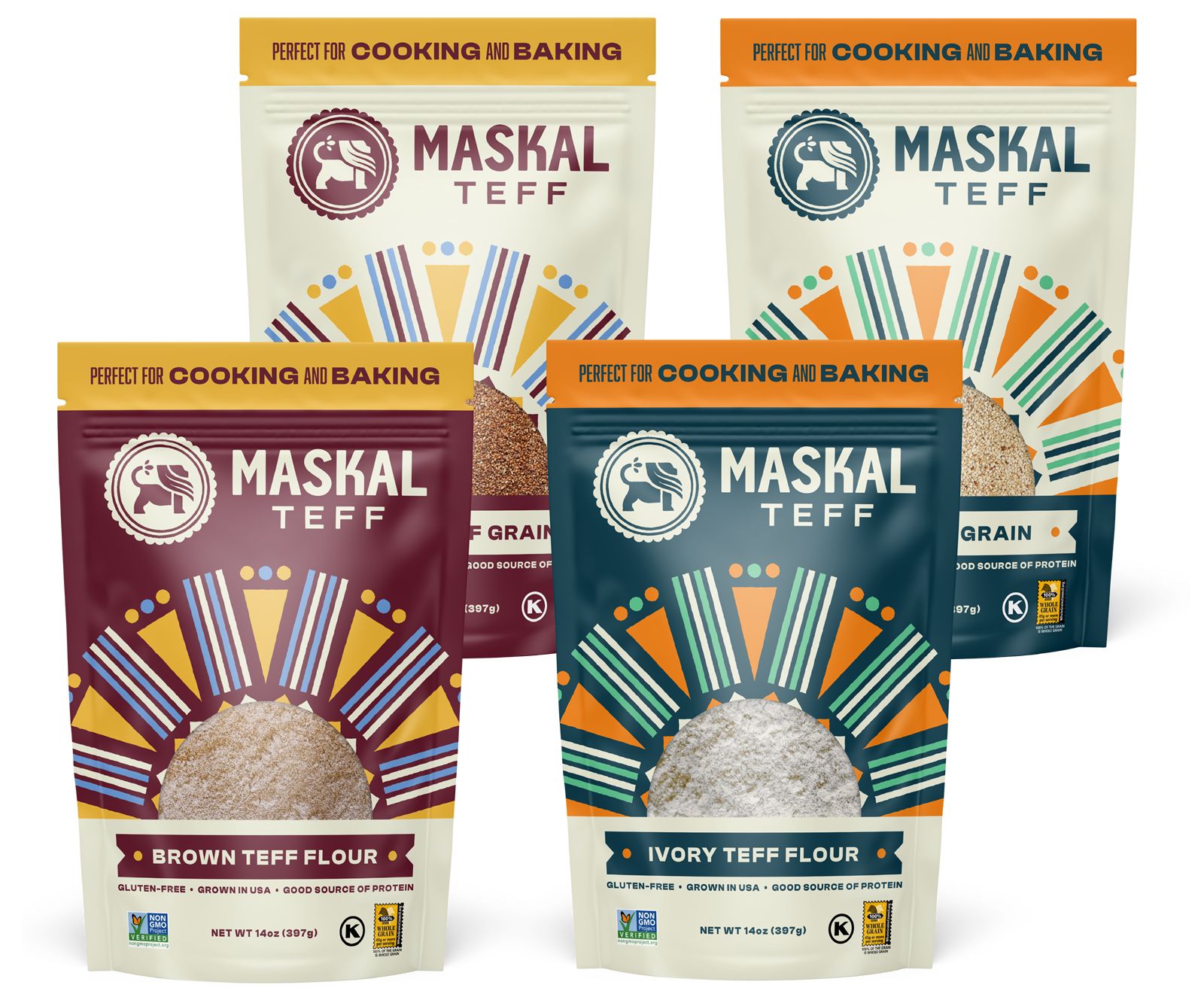 To make Maskal Teff identifiable to its customers, and to best reflect the cultural heritage of teff’s origins, Teff Company has developed a new visual identity that reflects the quality, taste and health benefits of its teff products.