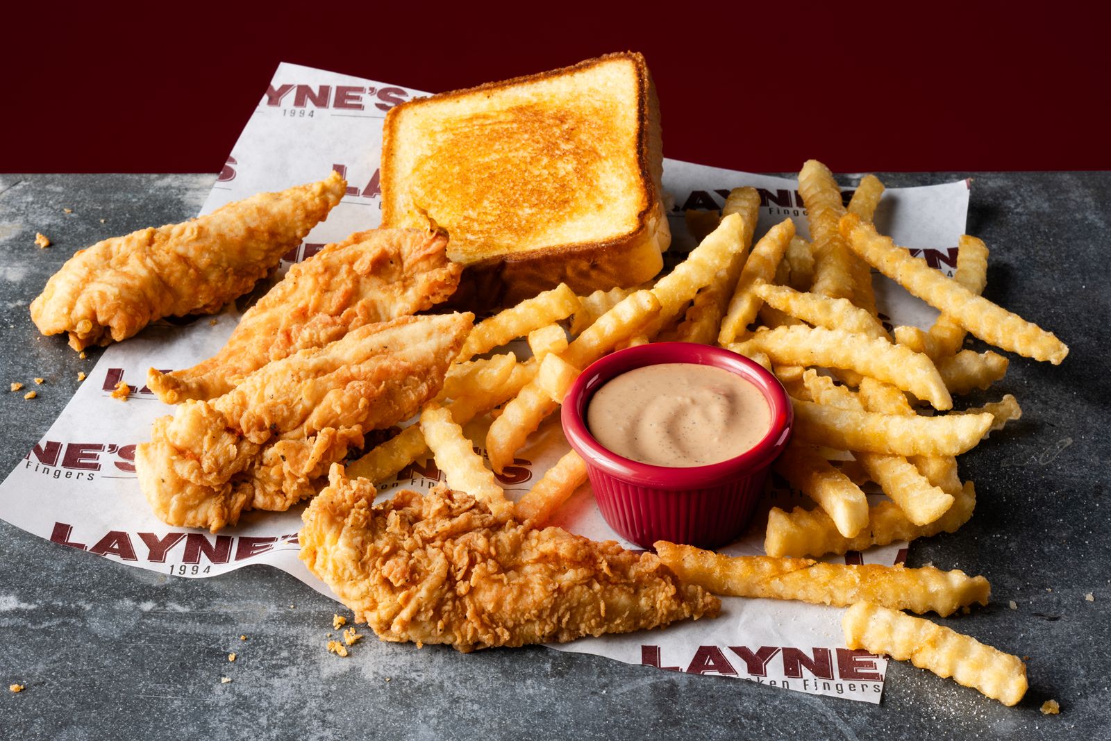 Founded in 1994 in College Station, Texas, Layne’s Chicken Fingers built its reputation on hand-breaded crispy tenders, iconic secret sauce and genuine hospitality. What started as a local favorite near Texas A&M University has grown into one of the fastest-rising chicken finger brands in the country, known for its crave-worthy menu, playful personality and loyal fanbase. With more than 40 locations open and rapid expansion underway, Layne’s is bringing its signature chicken finger experience to communities nationwide.