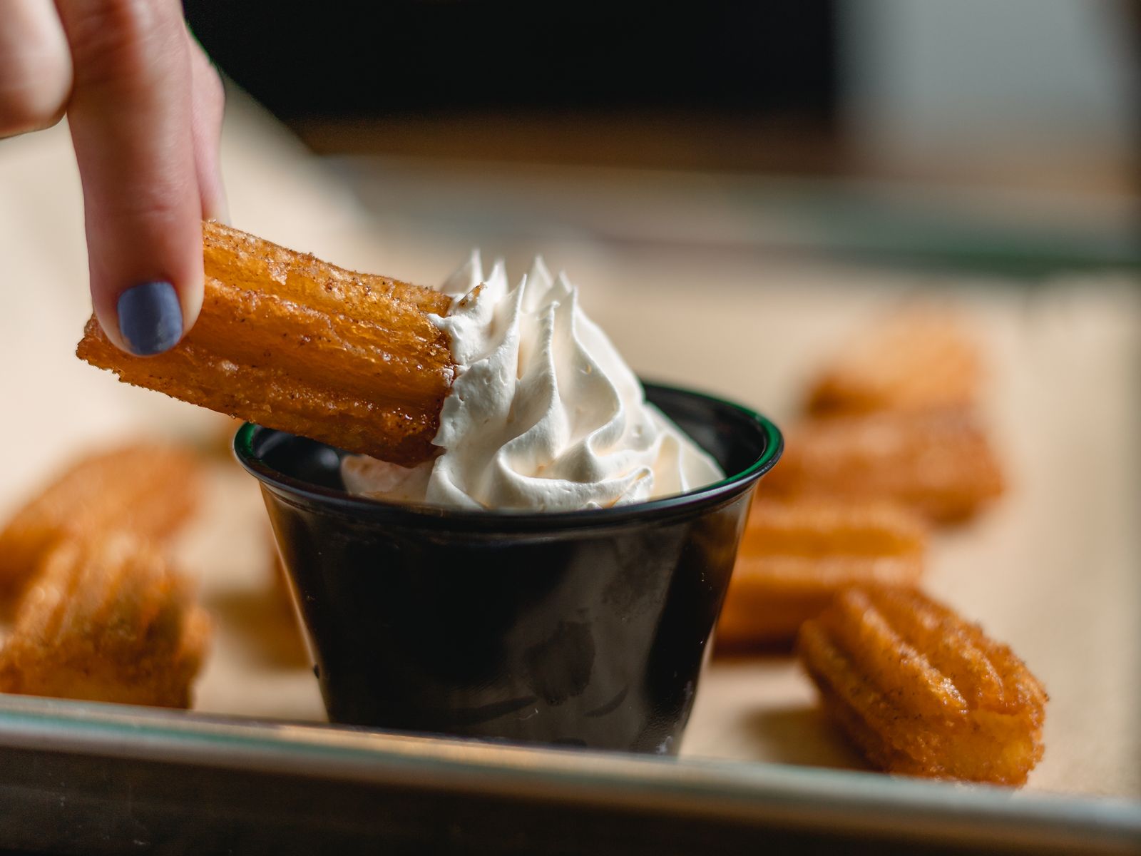 The 10-piece churro bites can only be described with a proper drool warning – read ahead with caution! The bite-size pieces are perfectly fried then dusted with cinnamon sugar and agave. Served with a side of whipped topping for dipping, they’re a perfect post-taco, salty-meet-sweet treat.