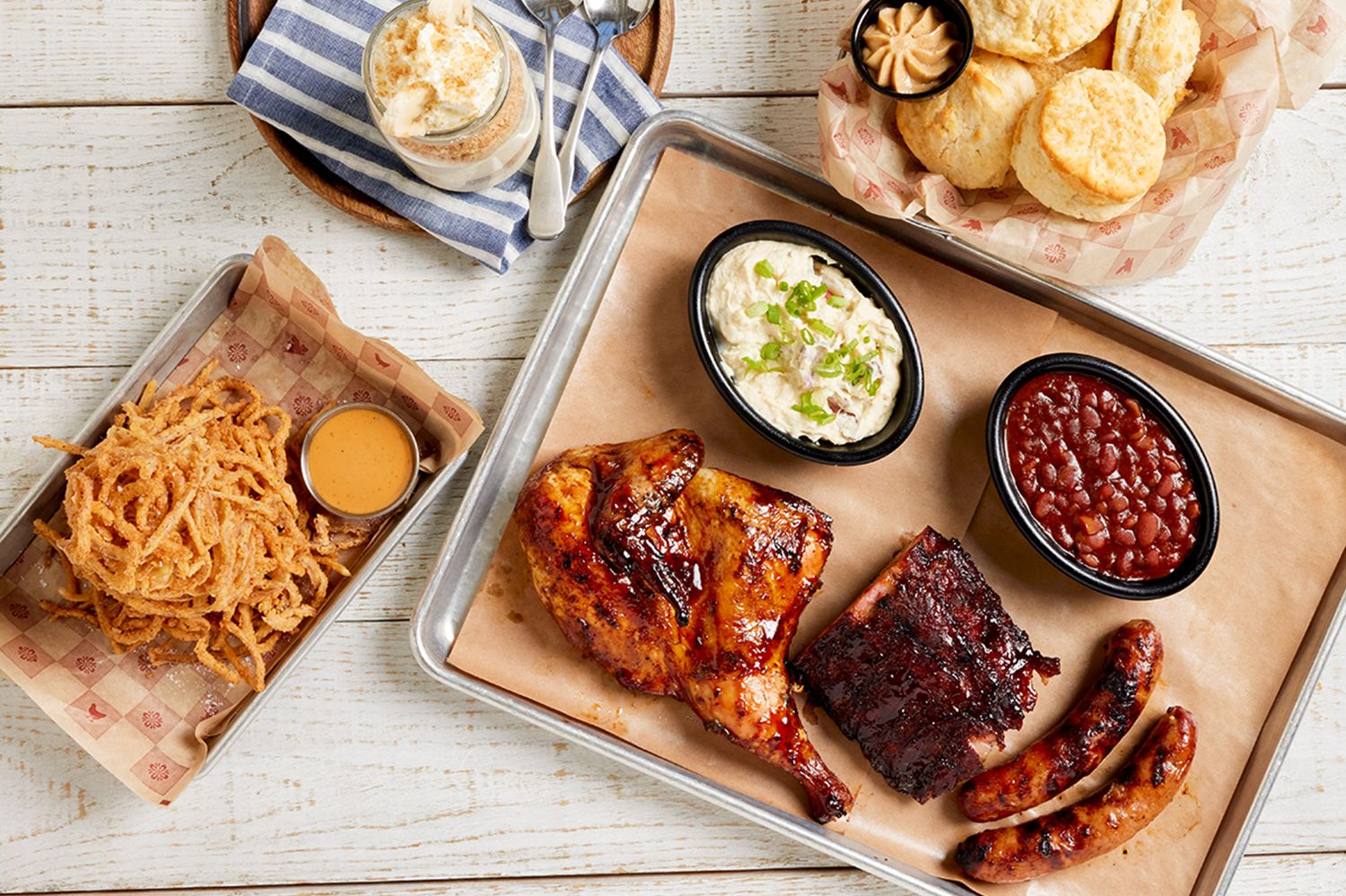 - BBQ Family Meal for Four: A true crowd-pleaser. Guests choose two slow-smoked meats and four swoon-worthy sides, plus hot-from-the-oven biscuits and apple butter for the whole crew, starting at $14.99 per person.