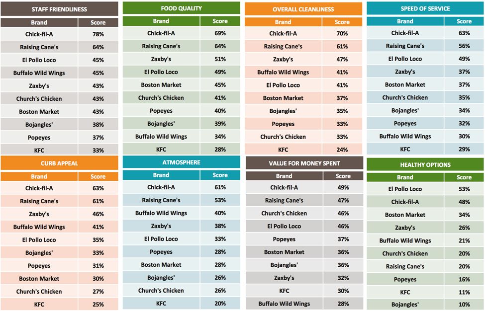 Graph 10: Favorite QSR Chicken Chains Ranked by Attributes