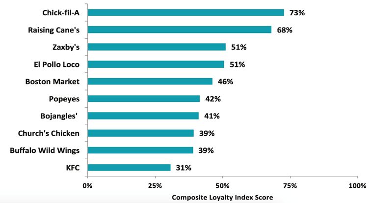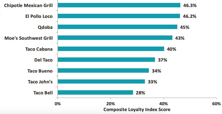 For the rankings, Market Force asked participants to rate their satisfaction with their most recent QSR experience, and their likelihood to refer that restaurant to others. The results were averaged to attain a Composite Loyalty Index score. Only chains that received at least 100 votes and representing 2% or more of votes were analyzed.