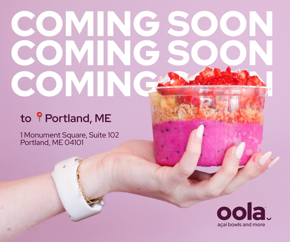 “We’re looking forward to bringing Oola Bowls to Monument Square,” said Rick McIsaac, General Manager of Oola Bowls Portland. “We’re excited to offer convenient and energizing meal options – whether it’s a post-workout fuel-up, a quick lunch, a mid-day pick-me-up, or a guilt-free indulgence. We’ll also feature award-winning coffee from New England’s Atomic Coffee Roasters, the perfect complement to our signature bowls.”