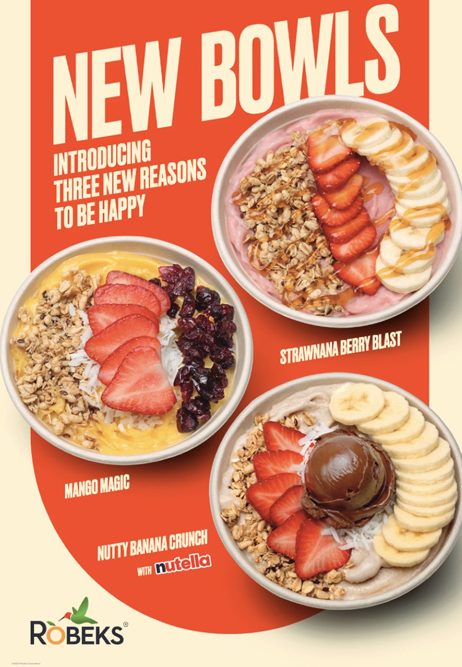“These three new bowls truly give our guests three reasons to be happy,” said David Hutchinson, Vice President of Marketing at Robeks. “They combine fan favorites with indulgent twists, like Nutella® and tropical fruit blends, while staying true to the fresh, high-quality ingredients our guests expect from Robeks.”