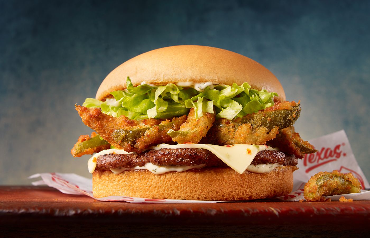 The action starts with a full-quarter-pound grilled beef patty and garden-fresh lettuce, served up with creamy jalapeño ranch dressing and melty pepper jack cheese, then crowned with crispy jalitos between two buttery toasted buns.