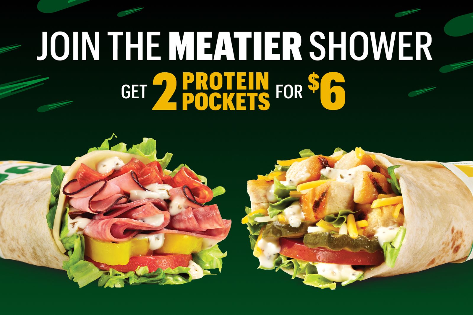 Guests ordering through the Subway app or online can use code 246MEATIER to get two Protein Pockets for $6 or ask your Sandwich Artist for the promotion at your local Subway. These protein-packed powerhouses deliver more than 20g of protein, perfectly complemented by hand-chopped vegetables, fan-favorite sauces and expertly wrapped in a soft tortilla.