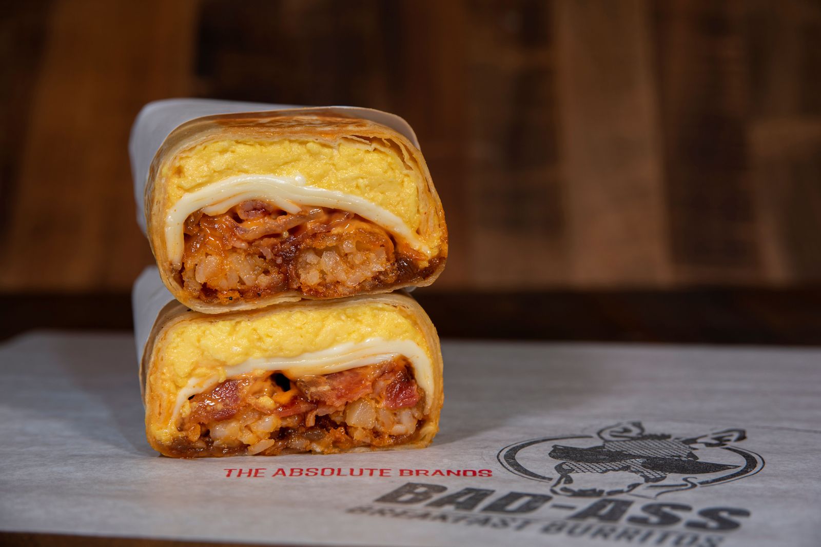 OG Cholula Burrito – Three eggs, Cholula brown sugar bacon, white American cheese, crispy tater tots, Cholula onion jam and Cholula mayo, wrapped in a flour tortilla. Available through Bad-Ass Breakfast Burritos.