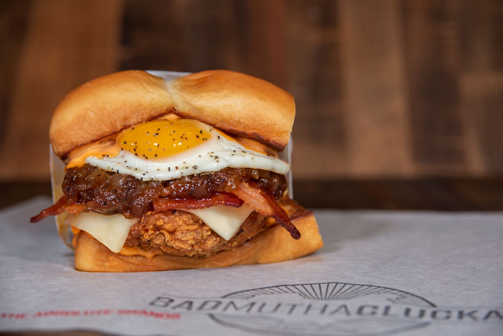 OG Cholula Chicken Sandwich – Fried chicken breast, white American cheese, Cholula brown sugar bacon, Cholula onion jam, a fried egg and Cholula mayo, served on grilled King’s Hawaiian rolls. Available through Bad Mutha Clucka.