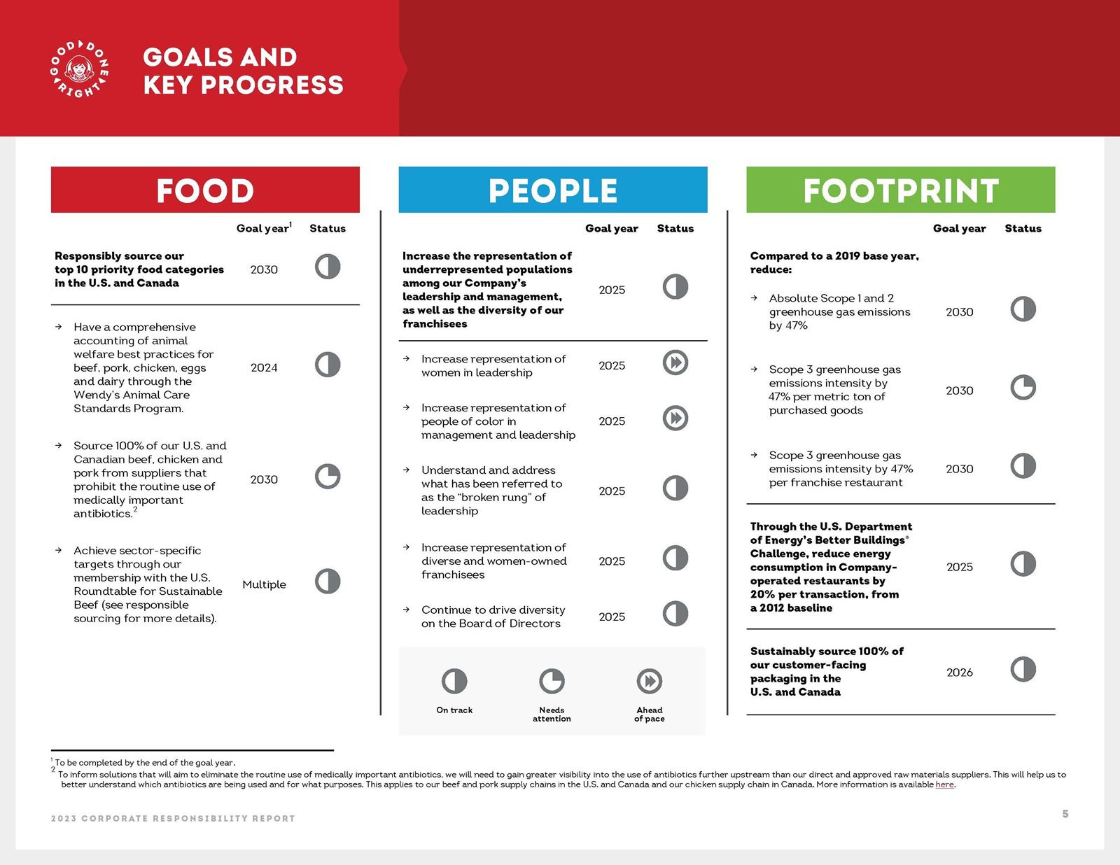 Wendy’s 2023 Corporate Responsibility report demonstrates progress against the Company’s Good Done Right goals and includes the following highlights.