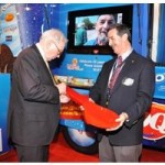 The larger-than-life spoon embellished with Buffett’s “John Hancock” was custom designed to adorn the DQ Blizzard®mobile which took to the road in April to celebrate the 25th birthday of the Dairy Queen system’s iconic Blizzard Treat. The Blizzardmobile has been traveling across the U.S. and Canada over the past four months distributing more than 75,000 free new Mini Blizzard Treats, all while raising awareness and funds for Children’s Miracle Network. The giant DQ spoon was signed by Buffett when the Blizzardmobile made a stop at the Dairy Queen booth during the Berkshire Hathaway shareholders meeting this past May.